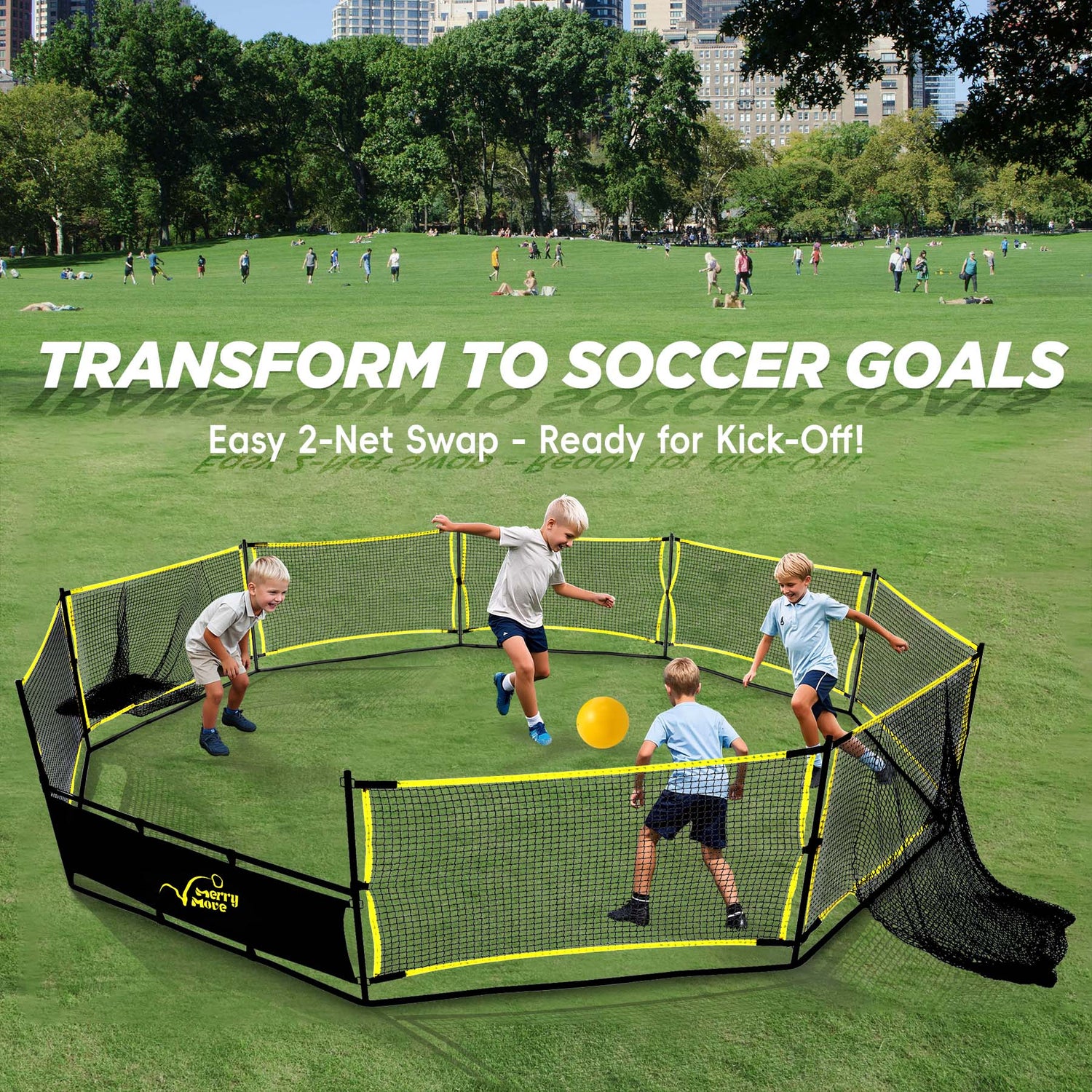 Gaga Ball Pit Portable: 15FT 3in1 Gaga Pit with Basketball Hoop and Soccer Goals